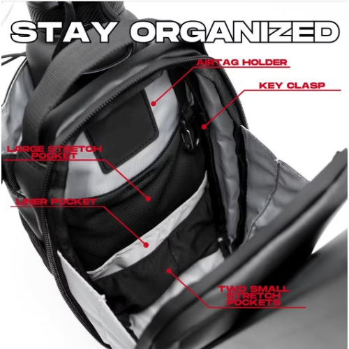 ActivBag’s interior is intelligently organized with dedicated spots for everything – including a built-in AirTag holder, a secure key clasp, a large stretch pocket, a liner pocket, and two small stretch pockets. This thoughtful layout keeps your essentials secure, organized, and always within reach – no more rummaging around. Designed for active lifestyles, this bag lets you grab what you need and go, so nothing slows you down.